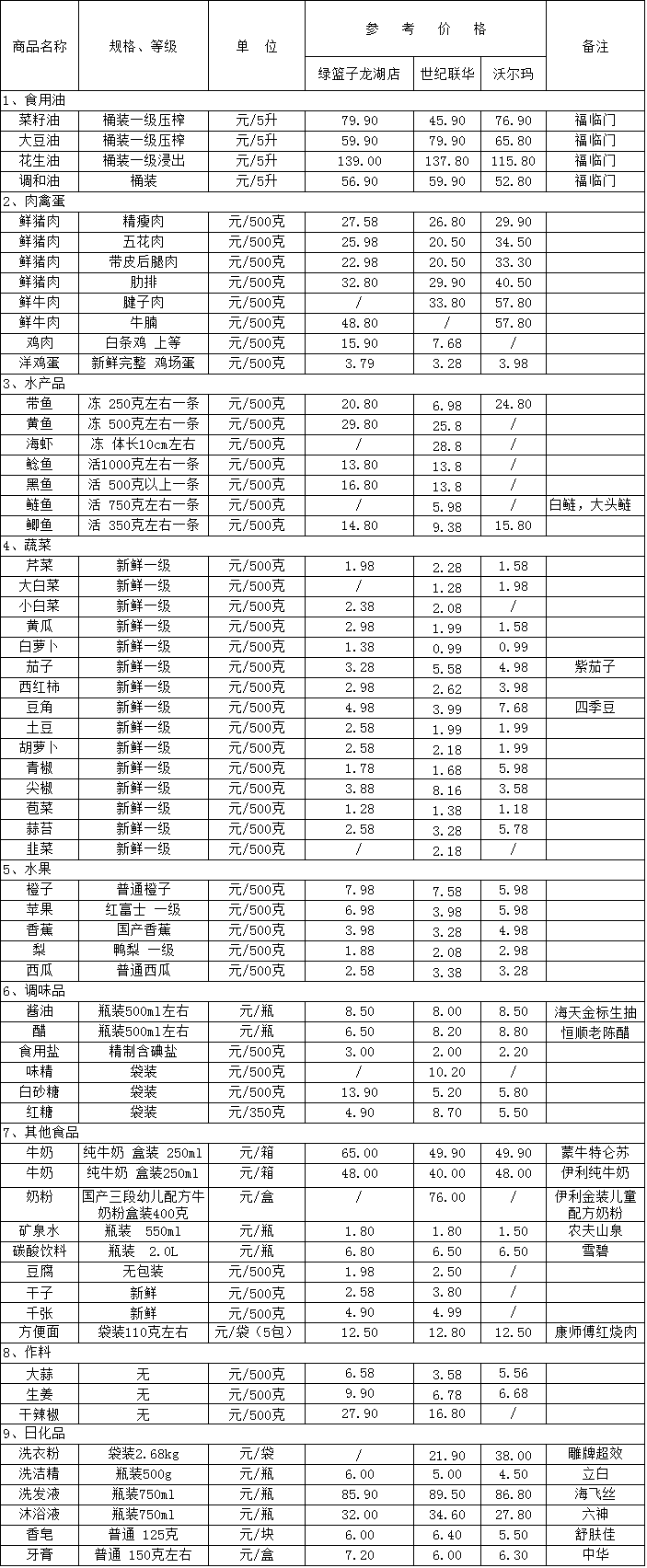六安城区“价比三家”活动商品价格(2020-05-18)