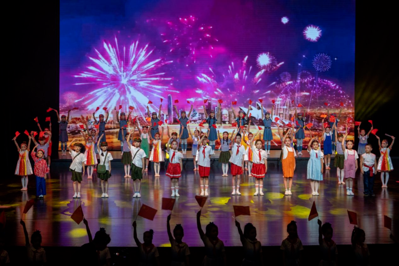 “五星红旗迎风飘扬,胜利歌声多么嘹亮。歌唱我们亲爱的祖国,从今走向繁荣富强……”展演在孩子们真挚地歌唱中闭幕,嘹亮的歌声将气氛推向高潮。孩子们用纯真的童心与闪亮的才艺,为全体观众献上了最难忘的回忆!红日初升,其道大光。六安市发改系统的少年儿童向阳生长,筑梦前行,必将接过强国建设、民族复兴的接力棒,奔向更加璀璨的明天。