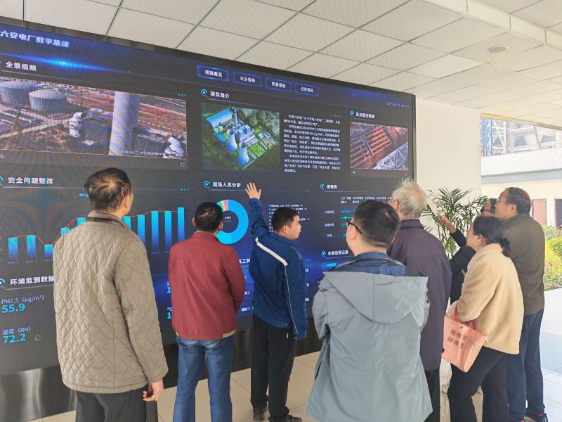 随后,考察组一行抵达中煤六安电厂项目部,详细了解项目整体规划、建设进展与核心成效,重点听取了关于“火电+”新型电力系统的创新实践、技术融合与效能提升路径的介绍,以及在质量管控与安全管理等方面的典型经验。该项目建成后预计年发电量约63亿千瓦时,将有效缓解全省电力供需压力,为我市经济高质量发展注入强劲动力,老同志们对此寄予厚望。