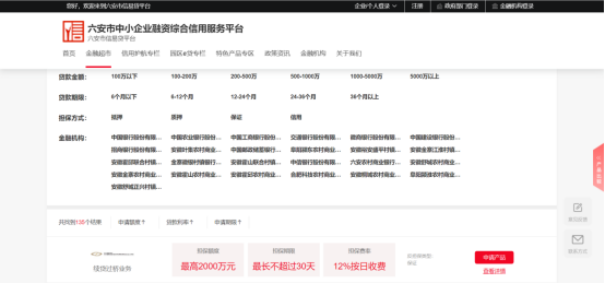 “信易贷”平台是六安市发改委联合市绿水云山大数据公司开发的企业融资综合服务平台,现已入驻金融机构34家,在线金融产品143个,入驻企业超13万户,设有金融超市、特色产品专区、园区E贷、等栏目,此次上线“续贷过桥”产品,旨在更好地帮助小微企业缓解融资难题。
