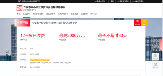 2023年7月4日,“续贷过桥”正式上线六安市“信易贷”平台,企业可通过市信易贷平台直接在线申请贷款。