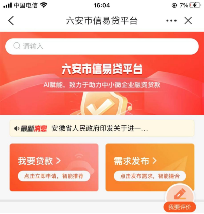 2、皖事通搜索六安市“信易贷”平台;